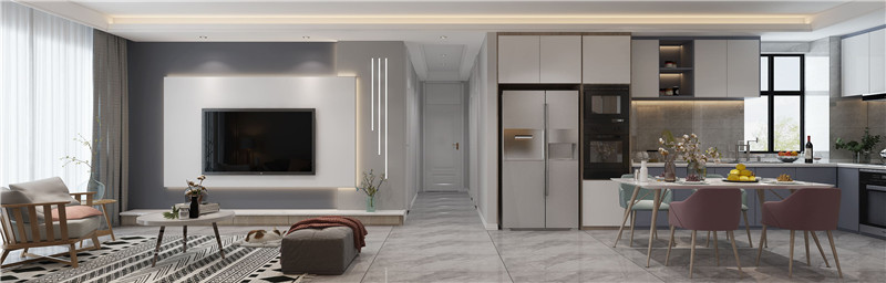 原始戶型的廚房過小,設置開放性廚房,餐廚一體,“放大”空間,增加房間煙火氣。