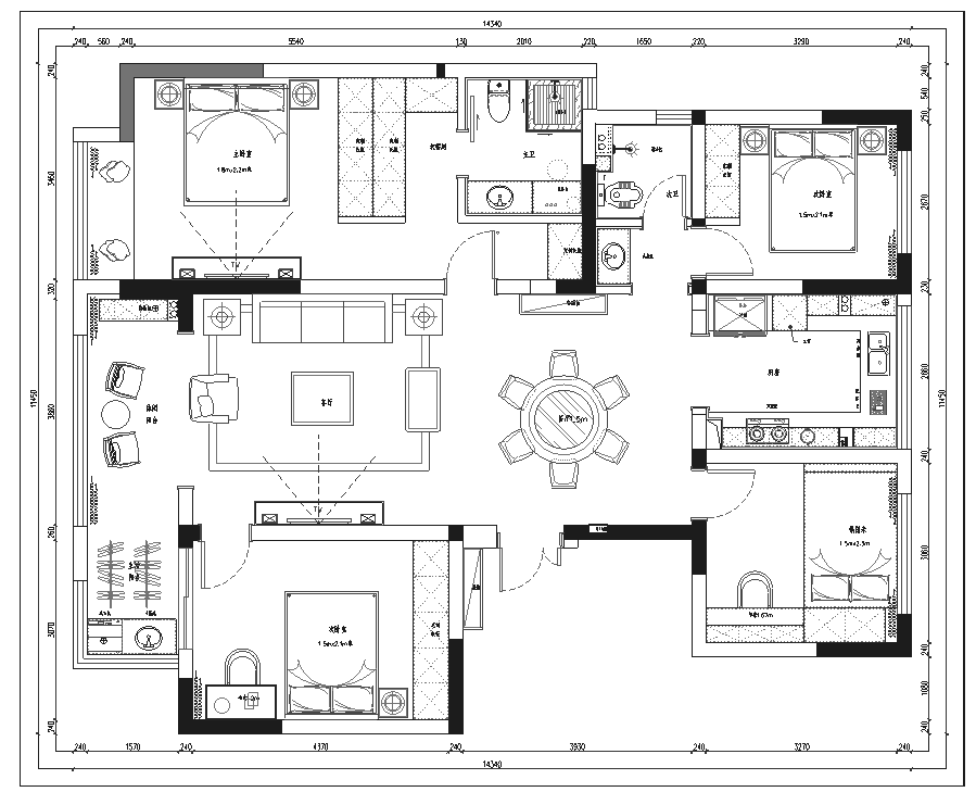 4、雖然起居室分布相對獨立有空間私密性和獨立性好的優點,但是相反的,也是缺點,如果說保留4個臥室,那么離衛生間遠的兩個房間,日常生活起居是比較苦悶的。