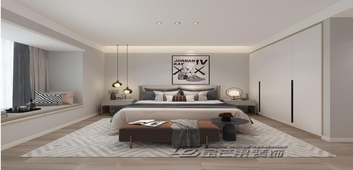 8、主臥室配這么大一個飄窗,我不管,我要在上面吃零食,看電影,打游戲,擼貓!