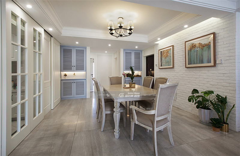 白色色調和通透的玻璃門,譜寫一曲浪漫的白色戀歌,餐廳不再是簡單的用餐場所,化身為家居場所里藝術和自由的代名詞。