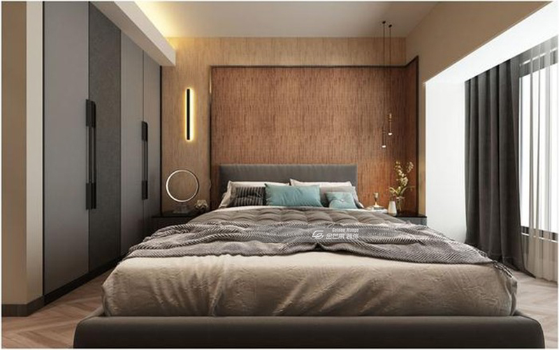 簡(jiǎn)約大氣,端莊優(yōu)雅,靈動(dòng)的燈飾和床頭背景墻的端莊結(jié)合,產(chǎn)生一種個(gè)性的時(shí)尚感,既沉穩(wěn),但不會(huì)沉悶。