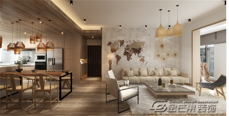 仍然運用了大量的木材材質,個性的燈飾就好像是把自然風光裝進里家里,陽光映照出木材溫暖的味道,木材散發著溫厚的光芒和觸感以及溫暖的清香,讓身心能真正地放松下來,給予滿滿的安全感。