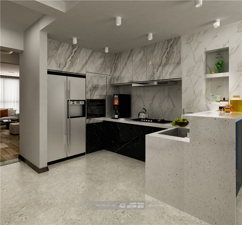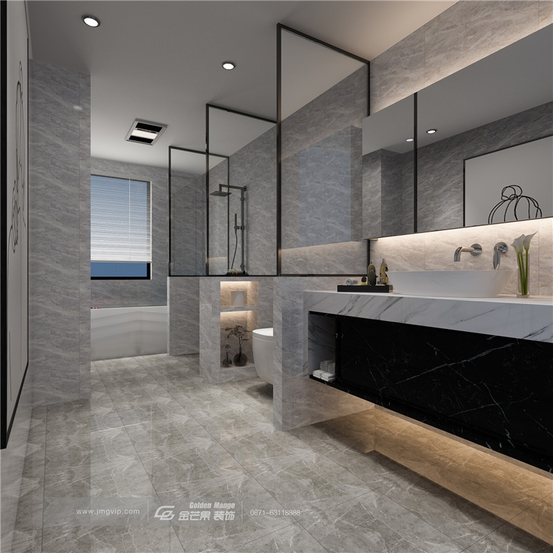 大理石上墻,黑色的紋理、壁燈、燈帶自成一體,藝術格調展露。