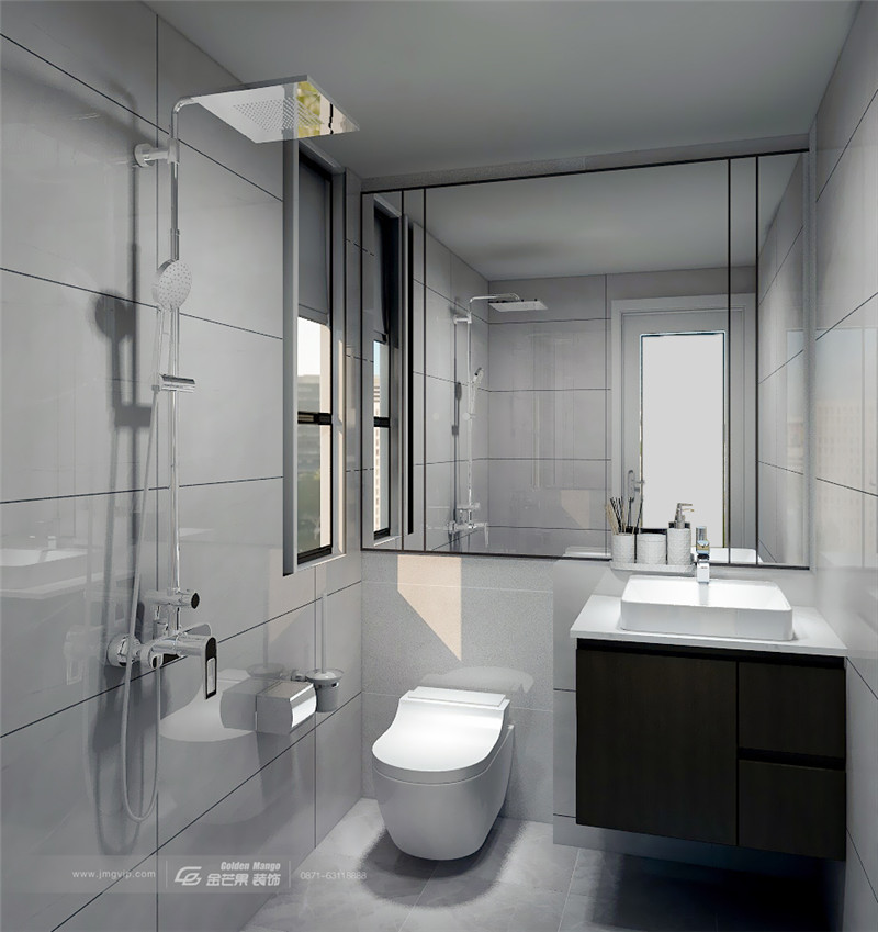 浴室也是一個精致的小可愛,灰色調既便于打理,又凸顯格調,獨特的鏡子設計讓視覺延伸。彰顯設計感和空間感。
