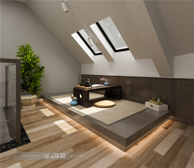 充分利用每一處空間優勢,陽光透過窗隙斜斜的灑下來,更為空間增添了一絲寧靜的氛圍,在此避開喧囂塵世,找回最本真的自己。
