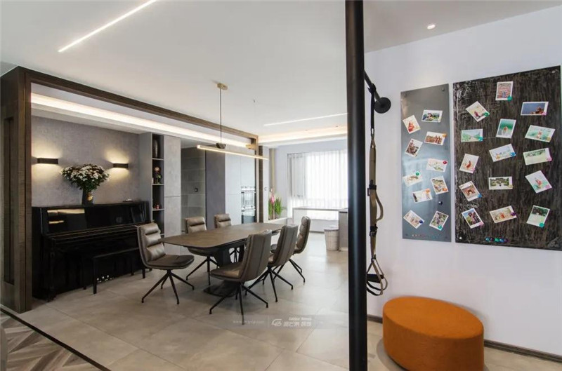 另外,考慮到男業(yè)主的健身需求,韓設(shè)計(jì)師同樣在入戶的位置設(shè)置了健身區(qū)域,寬闊的空間,男業(yè)主可以在此做一些簡(jiǎn)單的拉伸、引體向上等運(yùn)動(dòng)。此外,健身區(qū)域也可以看作是一個(gè)入戶玄關(guān)的設(shè)置。