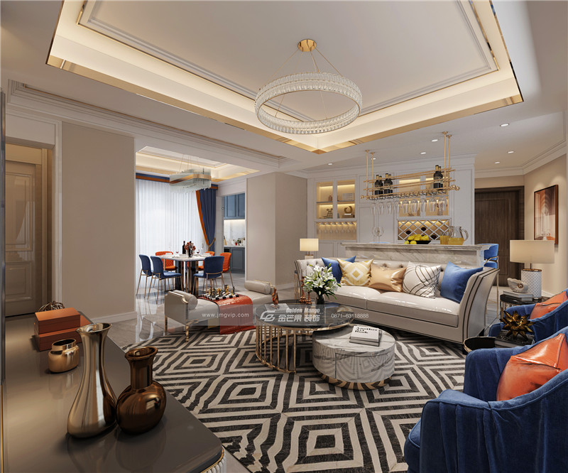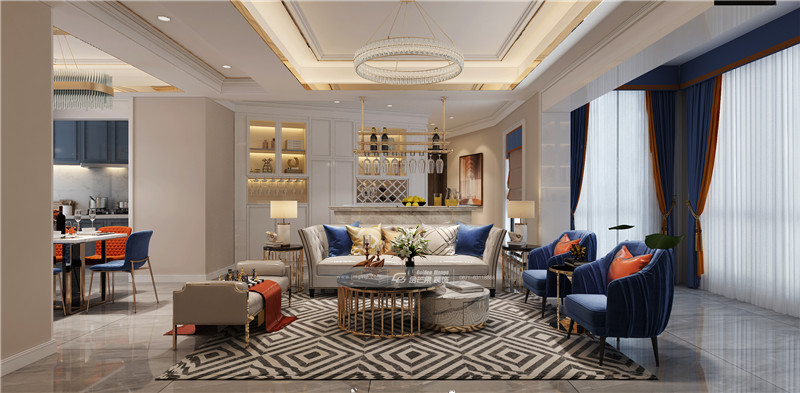 潤城五區136m2輕奢風格裝修丨只一眼,便墜入到優雅的藍色暢想里