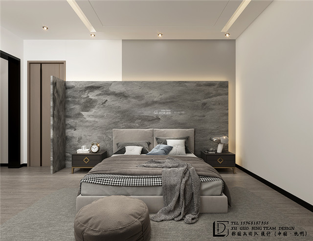 用材質打造出豐富的層次感,沉靜溫柔的灰色色調,營造適合舒睡的氣質舒逸氛圍。