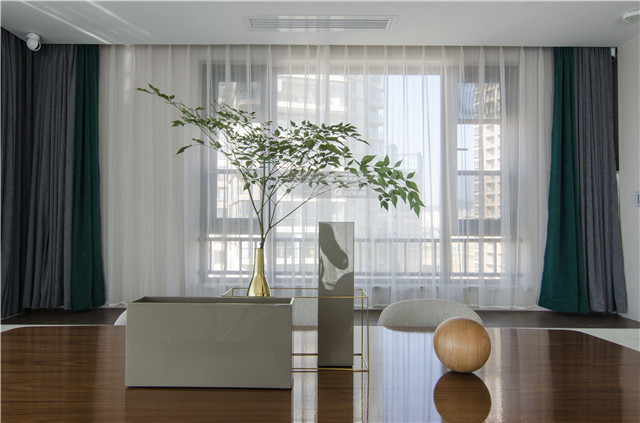 白色棉麻沙發帶來舒適的質感,打造慵懶、愜意的家居氛圍。白色棉麻和超大落地窗搭配白色紗簾, 仙氣飄飄的感覺讓生活也隨之干凈了許多,微風一起,白色紗簾被輕輕吹起,滿屋都是純凈、清新的味道。