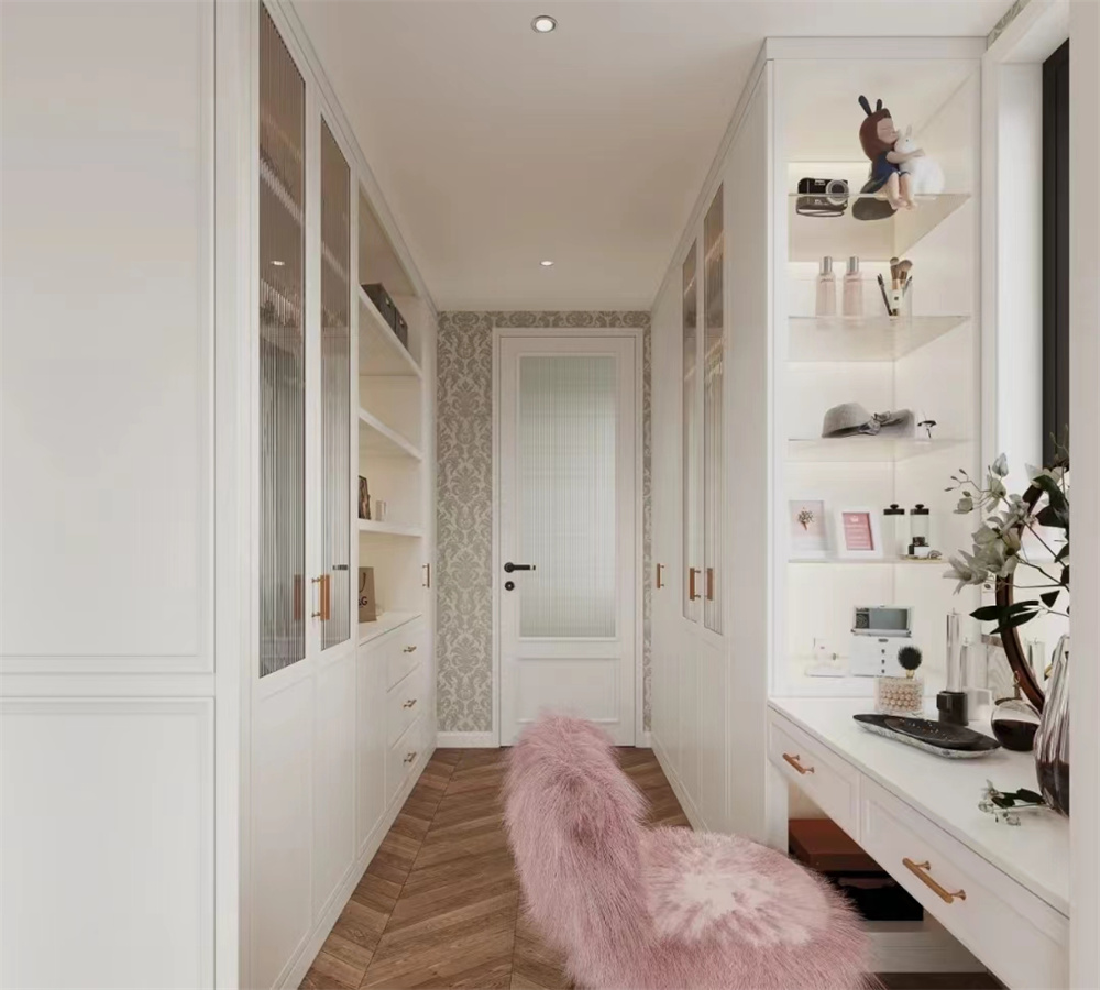 若是遇到一些特殊的戶型,也不必?fù)?dān)心,幸福金芒果裝飾在這溫馨建議您,一定要利用好這段動線,可以在走廊兩側(cè)定制通頂式的衣柜,這樣每次步入房間,都會經(jīng)過自己魅力精致的衣帽間啦,而且左右兩側(cè)空間也變得更豐富,可以容納更多的衣物!