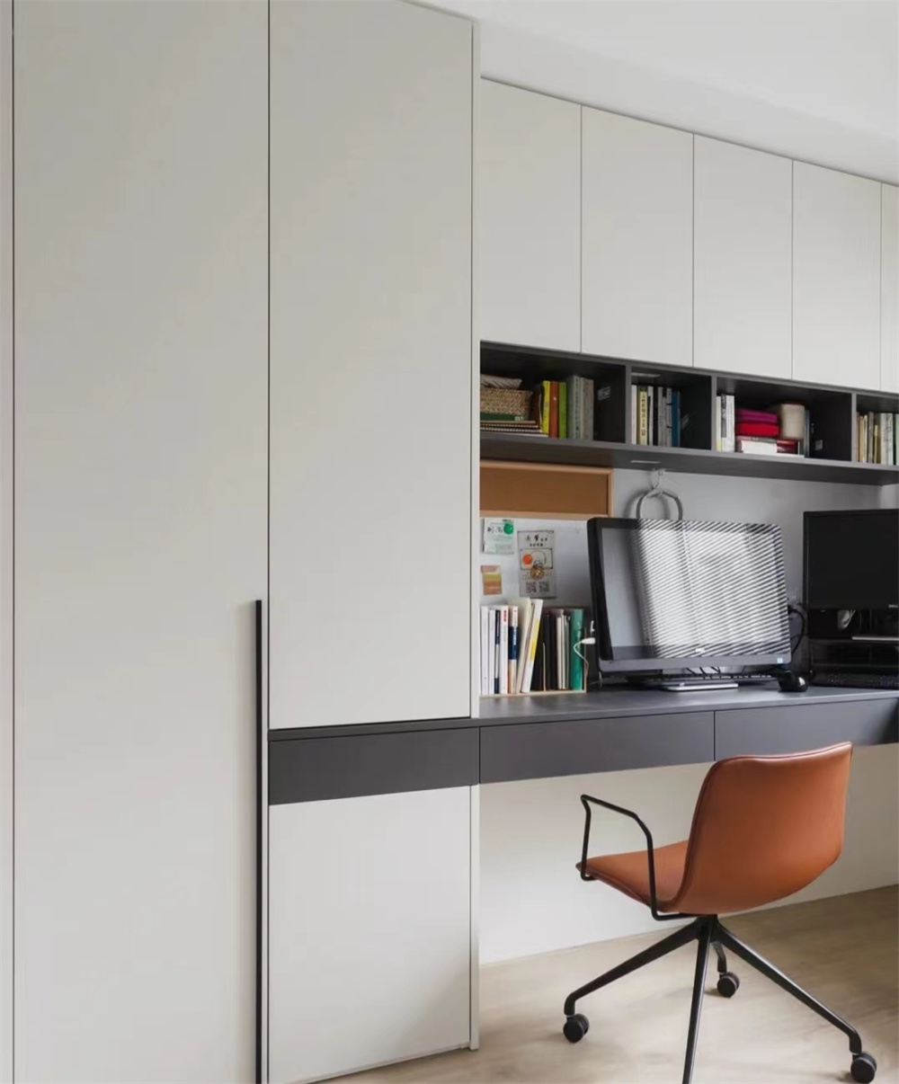 沒有多余的空間設(shè)計(jì)衣帽間,但又不想遺憾錯失,該怎么辦呢?幸福金芒果裝飾教您一個(gè)小妙招,那就是大膽嘗試不同的功能區(qū)結(jié)合,比如:書房空間、化妝空間等,可以將書房區(qū)或者化妝區(qū)置入衣帽間之內(nèi),根據(jù)使用側(cè)重點(diǎn)去設(shè)計(jì)安排功能占比,實(shí)現(xiàn)空間功能合二為一!