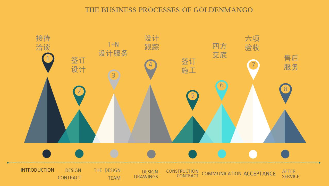 金芒果設計服務采取的是:1+N設計服務模式,這是行業最先進的團隊服務模式,每位客戶均能享受國家化私屬定制式的一對多服務體驗,即1位客戶享受【1名5年以上工作經驗的主案設計師+2名助理設計師+軟裝設計師+材料專員+預結算審核員】的團隊服務,真正做到【專業、細致、周到】