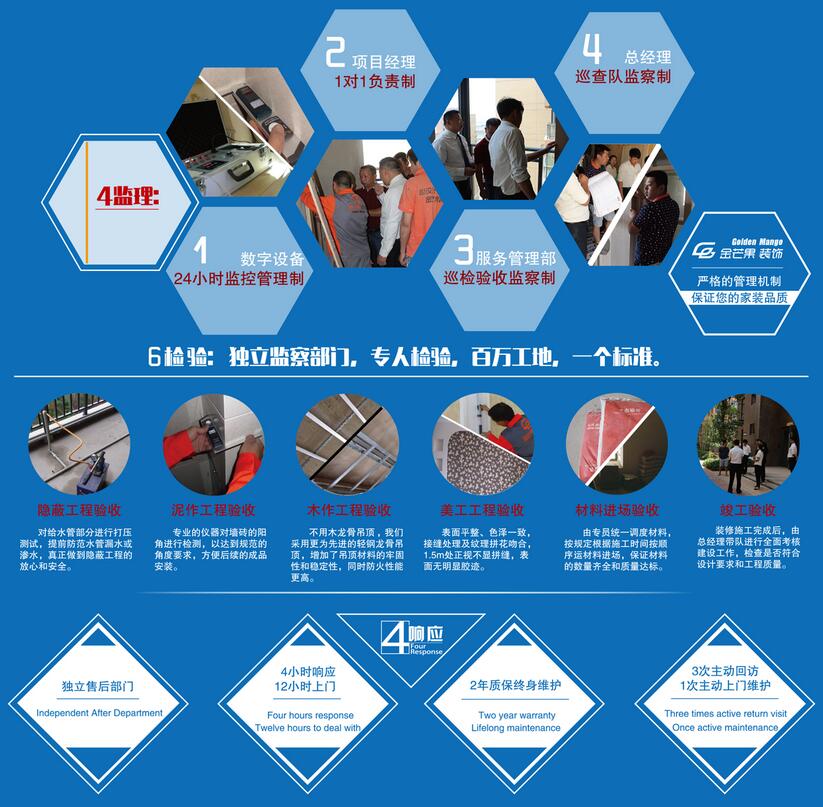 香港金芒果裝飾集團作為云南的星級裝飾公司,成立于2010年,發展至今已擁有五大管理中心, 200余名中高級管理、設計與工程技術人員,6000平米實景展館、材料及工藝展廳。一直以來,金芒果裝飾憑借其品牌實力、先進的設計理念、創新的施工工藝已成云南裝飾行業中一顆崛起的新秀。6年以來為100多個小區,5000多業主提供裝修設計服務,一路走來金芒果裝飾榮譽滿載,連續6年獲得“無投訴百姓滿意企業”稱號,并在2016年新浪家居評選中獲得“最受網友喜愛”的裝修公司,憑借雄厚的公司實力榮登“中國家居裝飾500強”企業。
