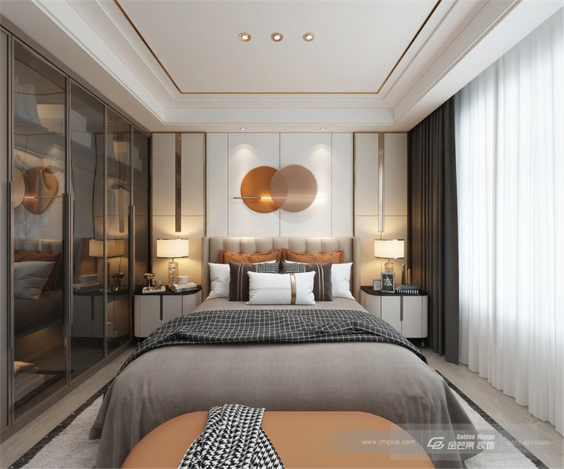 玻璃營造出臥室模糊的格局,光影變幻跳躍之間高級感輕松顯現。恰到好處的裝飾和搭配,讓空間精致度滿滿。床頭的燈飾讓眼前為之一亮,屋主品味彰然顯現。